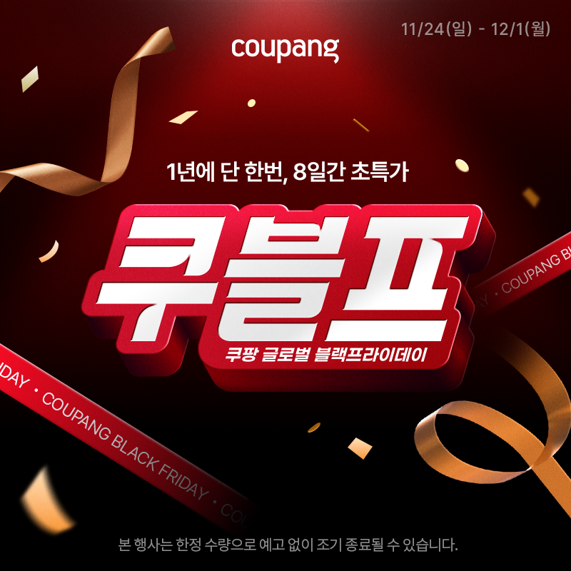 쿠팡 글로벌 블랙프라이데이가 시작되었습니다! 연중 단 한 번, 8일간 진행되는 특별 할인 행사로, 전 세계 직구템들을 폭탄세일로 만날 수 있습니다.[1]